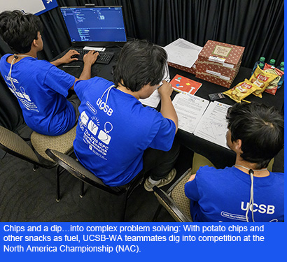 A team of three UC Santa Barbara students is one of fifty teams worldwide that is advancing to the World Finals of the 2026-’27 International Collegiate Programming Contest (ICPC). Team Team UCSB-WA qualified by placing sixteenth out of fifty-two teams at the North America Championship (NAC) event, held March 22 in Orlando, Florida. The top fifty-four teams from Canada and the U.S. advanced to the World Finals, to be held in Dubai, United Arab Emirates November 15-29.
