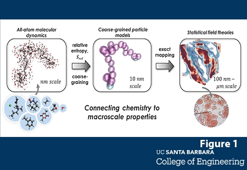 One project, led by Delaney, is intended to develop a unique simulation methodology to predict the structures and properties of complex polymers formulations found in various consumer products, including cosmetics, liquid soaps, detergents, paints, food, and motor oil. Such products are made from a complicated list of ingredients, which self-assemble to determine their properties and functions. The methodology, which also supports efforts of the BioPACIFIC MIP, bridges pioneering simulation techniques developed by two UCSB chemical engineering research groups: molecular and coarse-grained modeling techniques developed by Professor M. Scott Shell, and polymer field theory used by Professor Glenn Fredrickson to simulate at the meso-scale. Simulations will be used to model the molecular structures and chemistry of new materials and suggest how design criteria can be met.