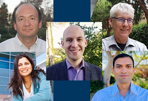 2021 Outstanding Faculty winners (clockwise from top left) Amr El Abbadi, Joe Chada, Mark Rodwell, Yogananda Isukapalli, Sumita Pennathur