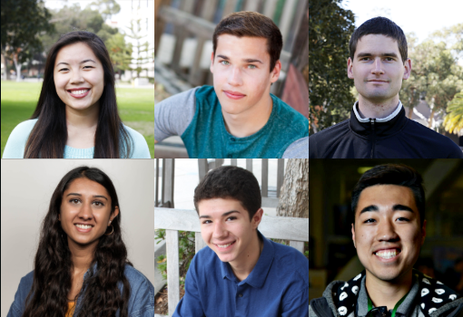 Top row, left to right, Dana Yuen, Kyle Douglas, Thomas Fork; bottom row, left to right, Sayali Kakade, Dorian Bruch, Danny Hyun-Bum Cho, all among College of Engineering's outstanding graduates for 2019