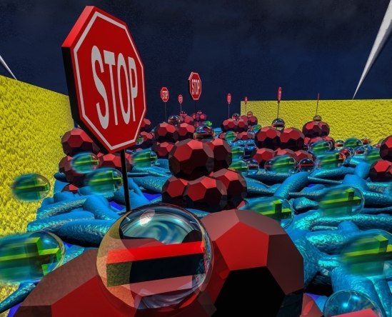 Illustration of the charge carrier "traps" created by the addition of certain molecules to polymer semiconductor materials.
