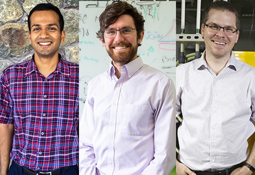 NSF Early CAREER Award winners (from let) Kunal Mukherjee, Elliot Hawkes, Alban Sauret